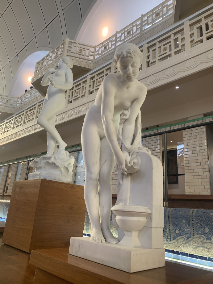 Ce qui rend La Piscine si singulière, c’est sa capacité à transformer son passé en atout. Les anciennes cabines de vestiaire sont devenues des vitrines d’exposition, les gradins accueillent sculptures et textiles, et le bassin lui-même est au cœur du parcours muséal. Ici, on ne visite pas seulement des collections : on vit une immersion où lieu et œuvres se répondent en permanence.